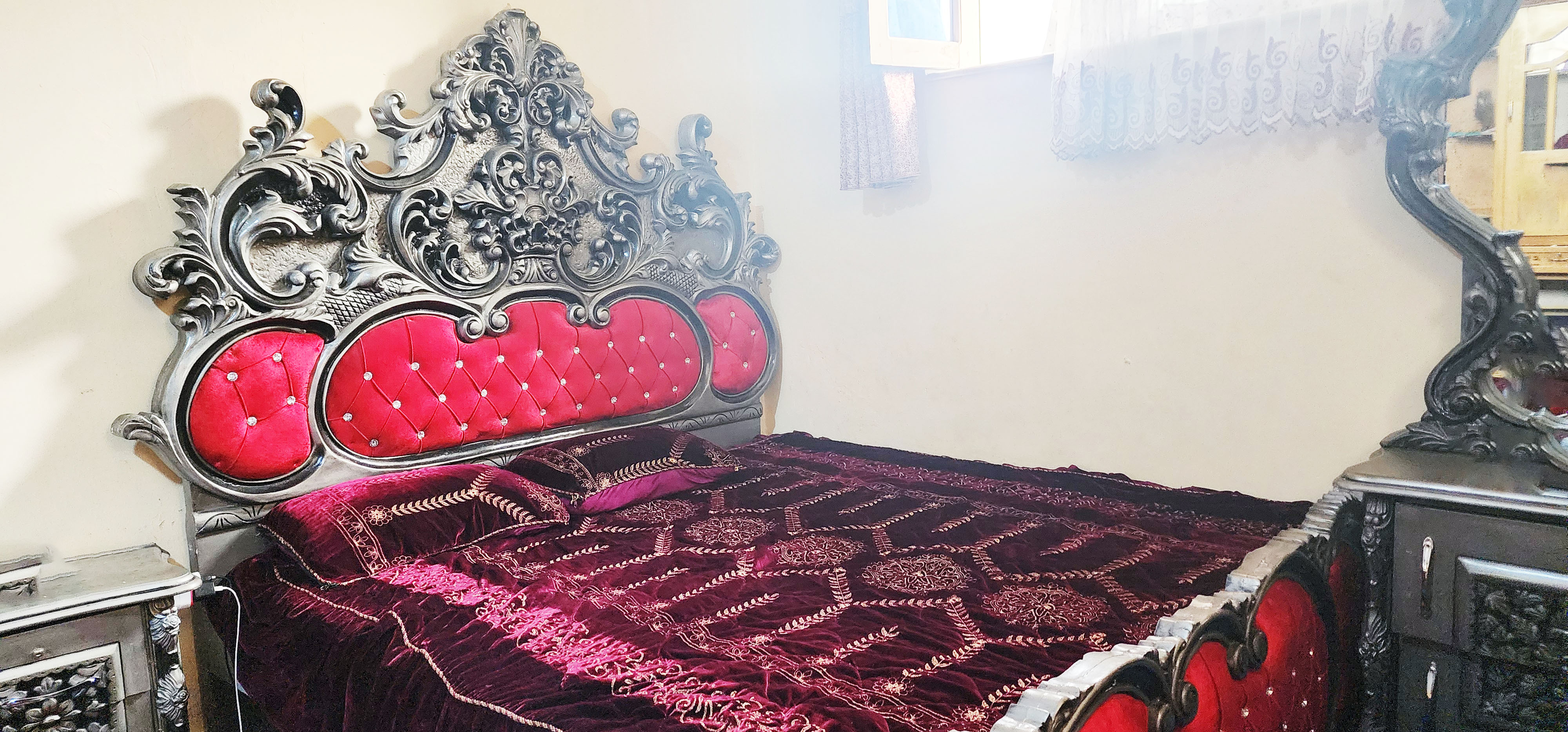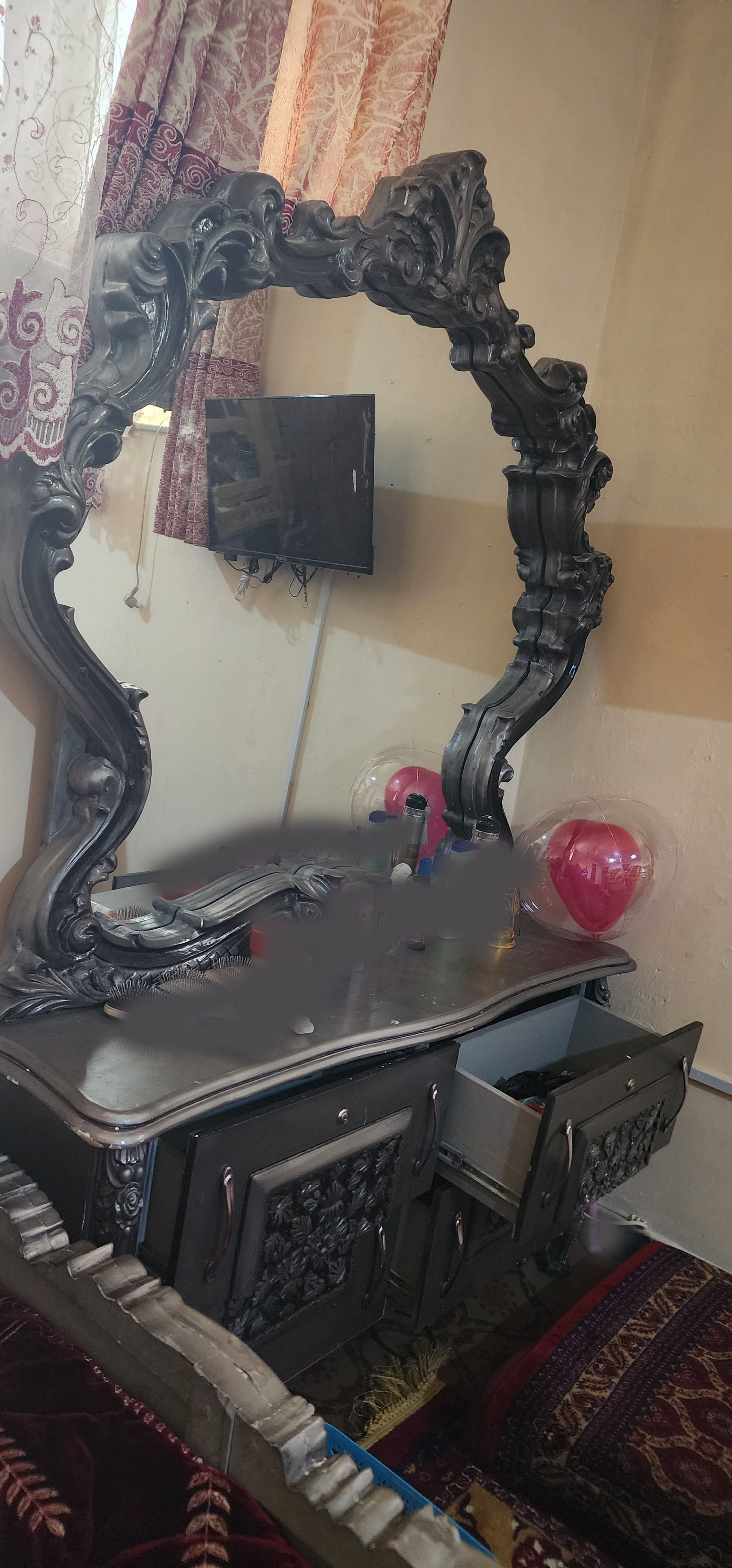 تخت 2*1.8 متر میباشد ساخت: چوب اصل دیزاین دار میزآرایش:تقریبا 1.5 متر عرض دارد یاداشت:صرف 3 اجناس که بالا زکر شده است قابل فروش است