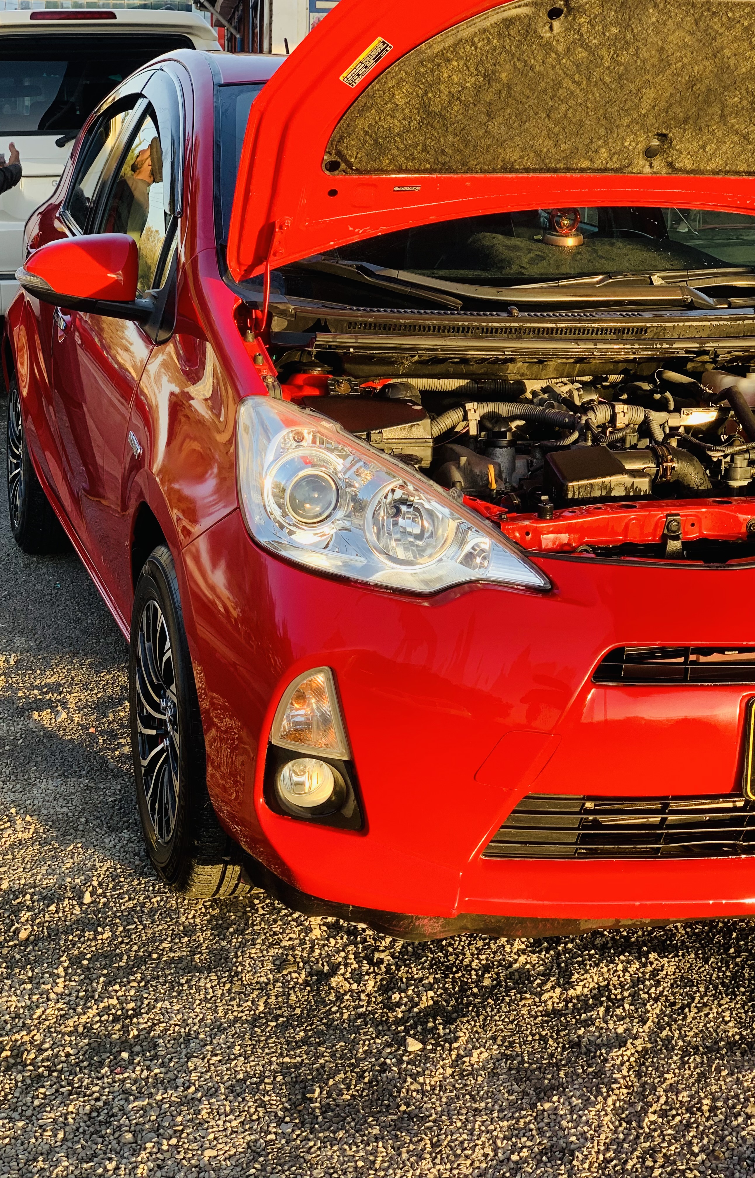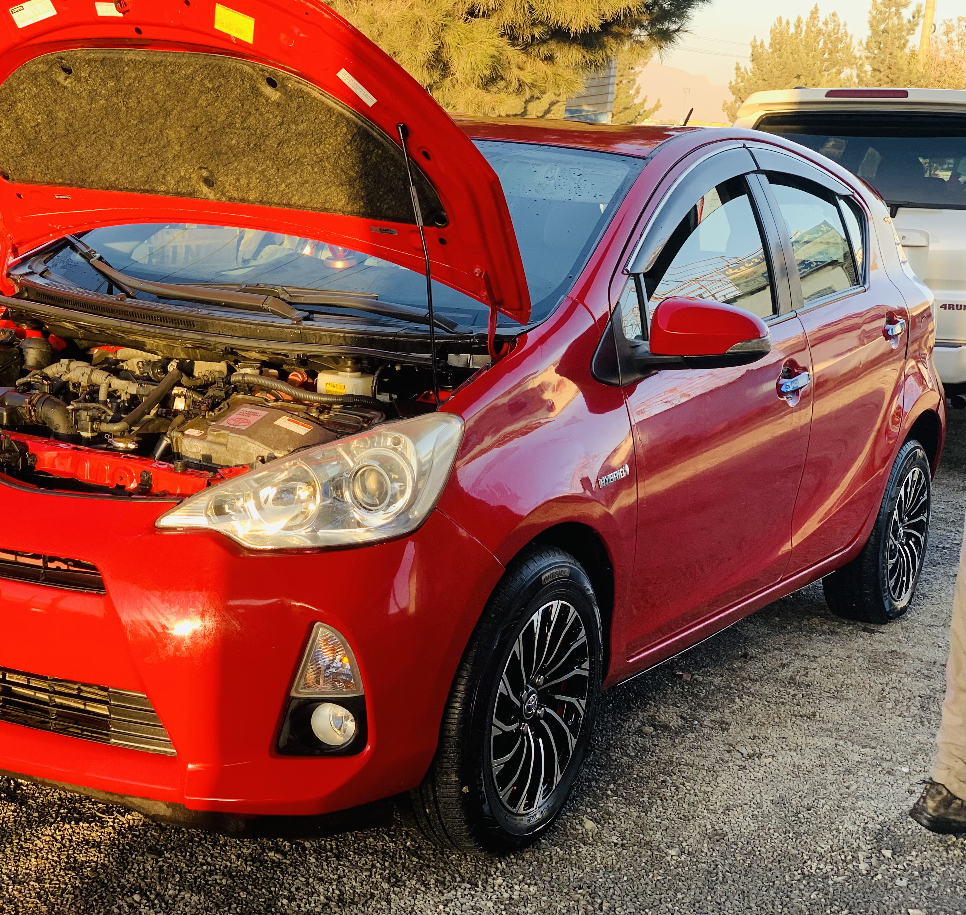 Prius C 2012, red color, no accident, normal ABS, sound battery health, with fog lights, screen, excellent sound system, rear camera, finger start. License plate is - 6 and above 85000.