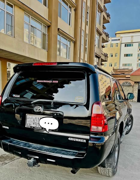 Model: 2008 Type: Toyota 4Runner (Urban Runner 4WD) Color: Black with sparkle (company color) Engine: 6-cylinder petrol Transmission: Automatic License Plate: Negative 5 (***91) Condition: Excellent, well-maintained