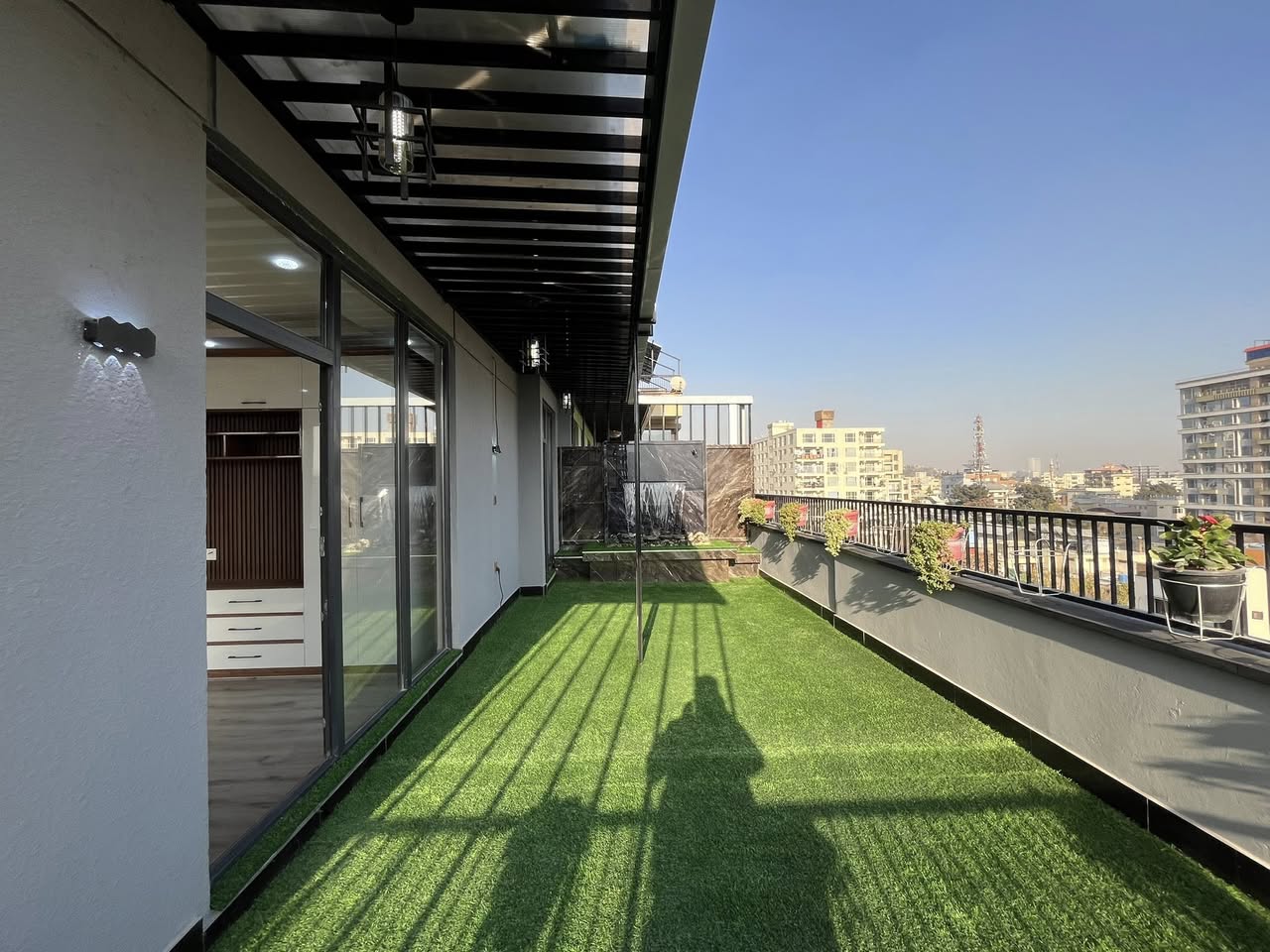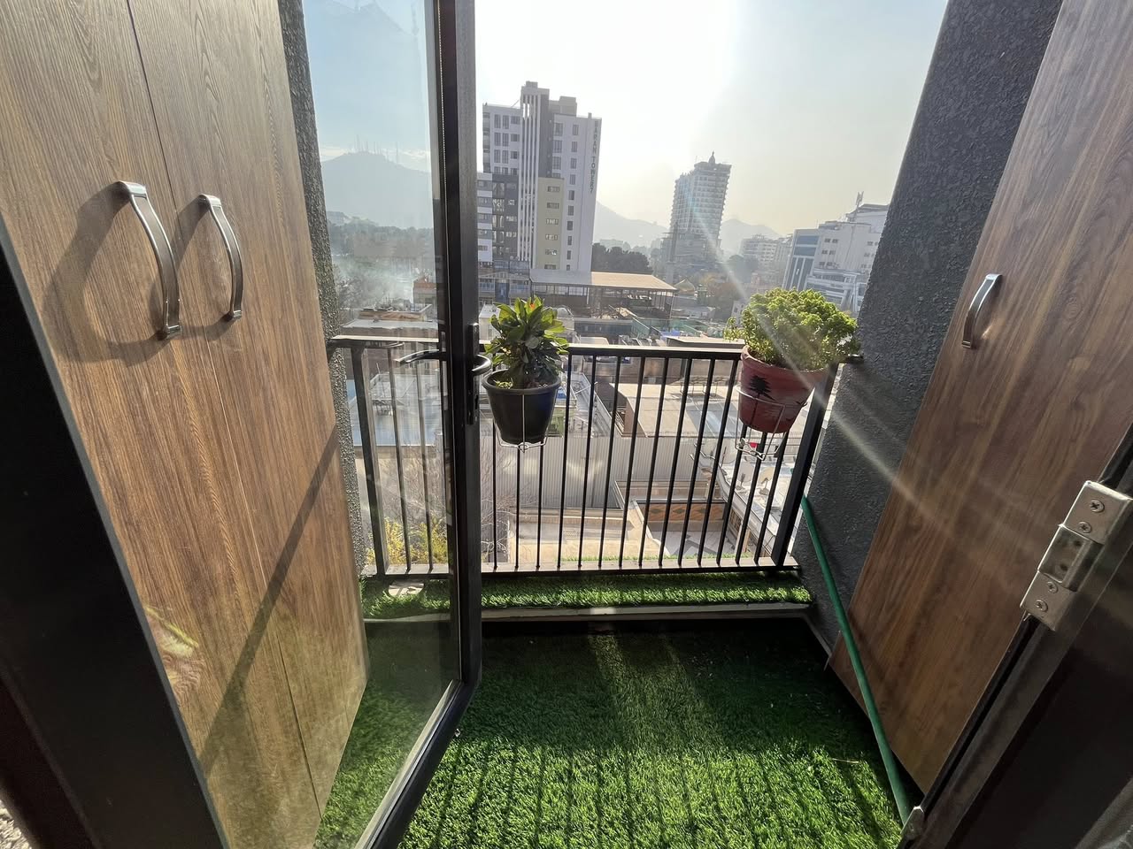 🔹 یک آشپزخانه اوپن و یک بالکن تخت بام بسیار زیبا و سرسبز